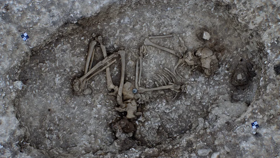 The grave of a woman in her 20s, crouched around a pot or beaker, was found by archaeologists only a short distance from the Neolithic stone circle at Stonehenge. It is thought to date from about 4,500 years ago. (Image: © Wessex Archaeology)