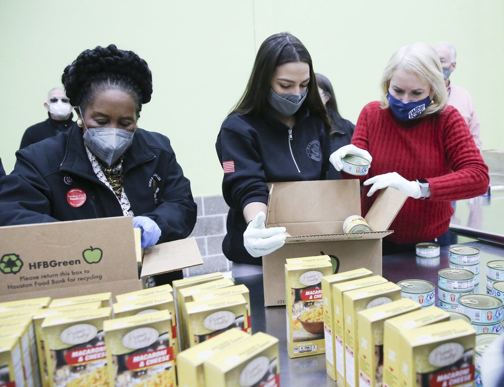 1 of 10 From left, U.S. Representatives Sheila Jackson Lee, Alexandria Ocasio-Cortez, and Sylvia Garcia, fill boxes at the Houston Food Bank on Saturday, Feb. 20, 2021. President Joe Biden declared a major disaster in Texas on Friday, directing federal agencies to help in the recovery. (Elizabeth Conley/Houston Chronicle via AP)