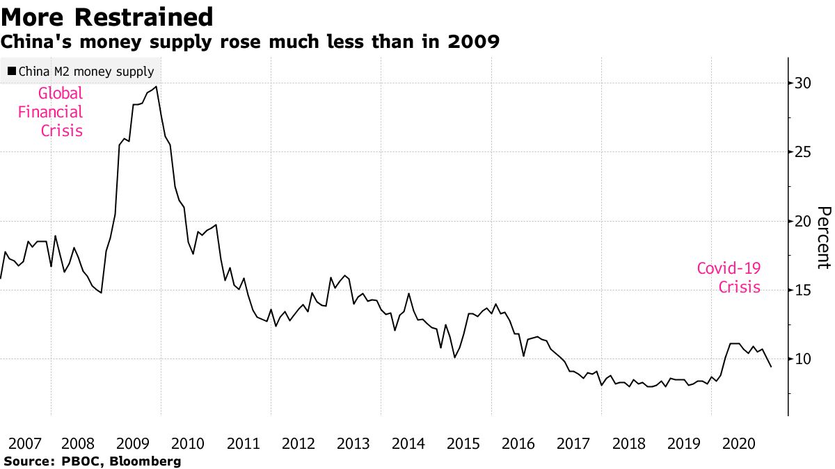 China’s leaders have a different take. A massive unleashing of credit growth back then led to unused infrastructure, ghost towns, excess industrial capacity and an overhang of debt. While rapid containment of the pandemic meant the economy didn’t need as much help in 2020, President Xi Jinping and his team are now winding things back to re-focus on longer-term initiatives to strengthen the technology sector and tamp down debt risks.