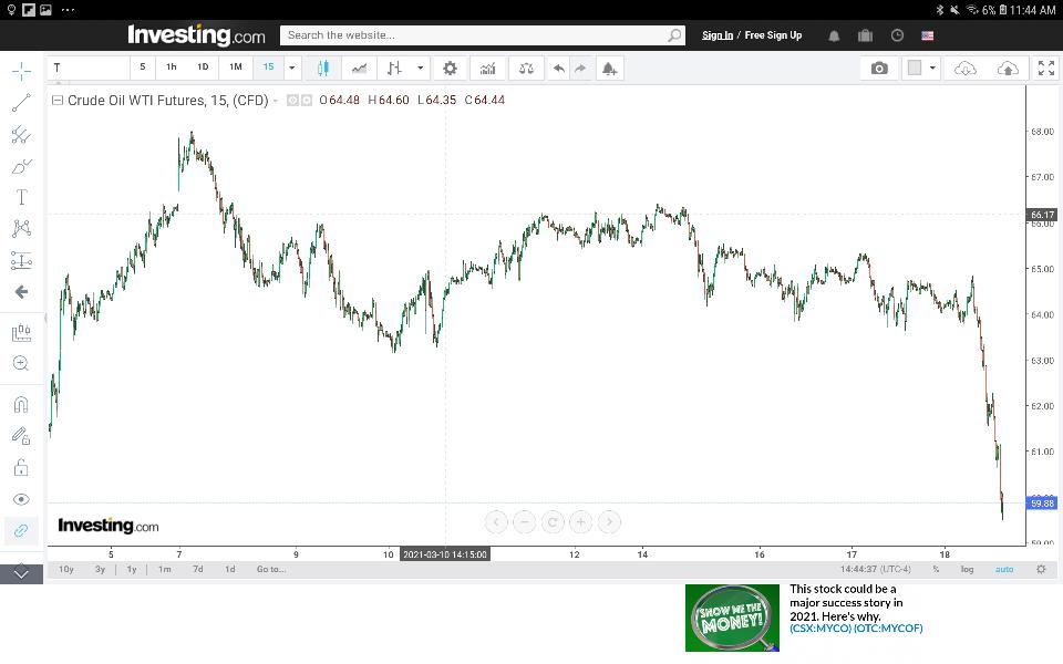 Crude Oil - Somebody on the thread called for a move to the 66.18 area, which would be a ceiling on price for the foreseeable future. Selling of naked calls was even suggested. Nice call!!