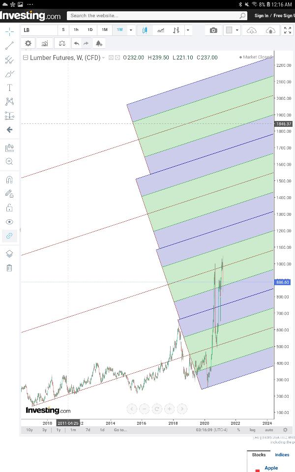 A quad forks move is under way with a price objective of $2200 on the lumber futures contract. Get ready for new home prices to double this year, and existing to do nearly the same.