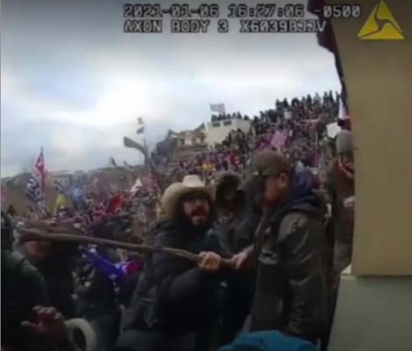 Judge REJECTS request for 1-week release from jail for Jan 6 defendant Jon Mellis, who sought to attend dad's funeral Mellis is allegedly the man in cowboy hat beating police with a stick. DOJ called him flight risk, due to potential for "significant" prison sentence in case