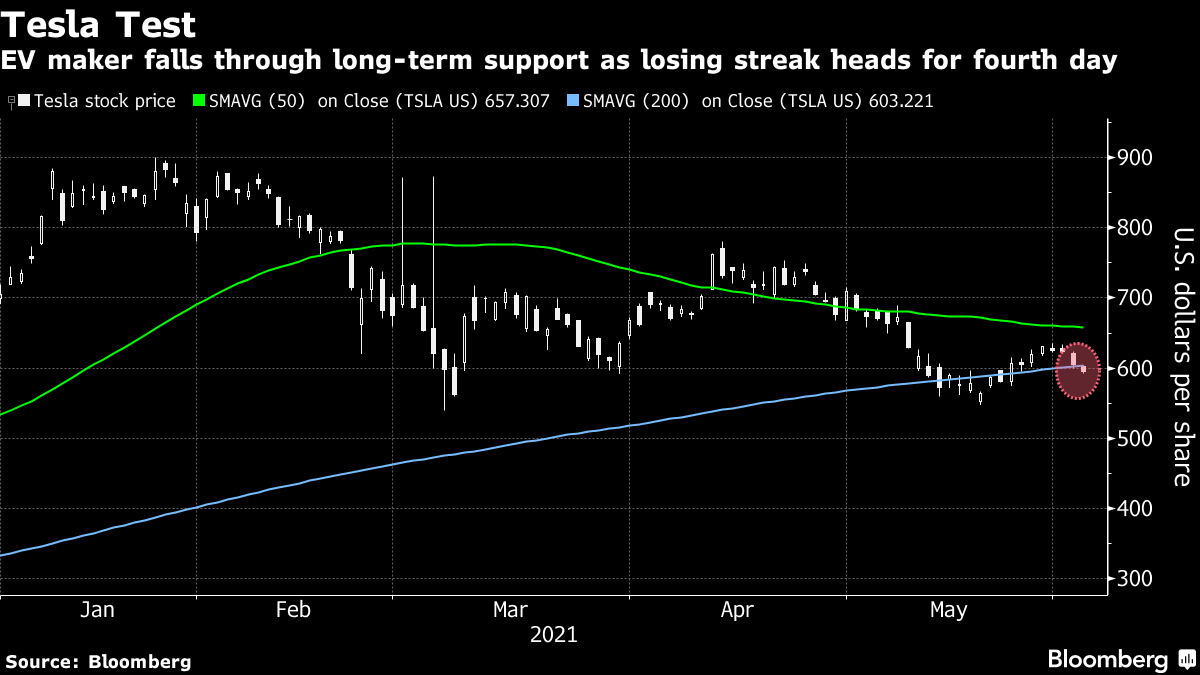 Tesla Sinks as Report Casts Further Shadow on China Sales Craig Trudell 4 June 2021, 04:18 GMT+8 Tesla Inc. shares tumbled on a report that the electric-car maker’s Chinese orders dropped by almost half in May.