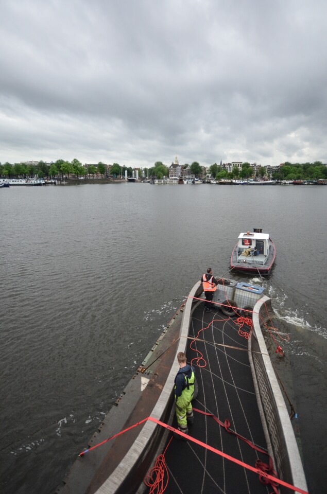 The project was designed by Joris Laarman Lab, with Arup handling engineering duties, and also involved ABB, Air Liquide, ArcelorMittal, Autodesk, AMS Institute and Lenovo. The original plan was to create the bridge in place, but this turned out to be impossible due to safety issues and other concerns, so it was made in a factory. The actual printing process only took six months and was completed in 2018, but because of unforeseen delays, including a wait while the canal walls were refurbished, the bridge was only recently transported to the site by a boat and then raised into position using a crane. It has a permit to remain in place for two years.