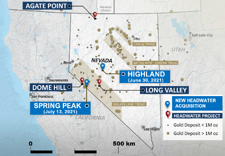 Figure 1: Location of the Highland Project and other Headwater Nevada projects