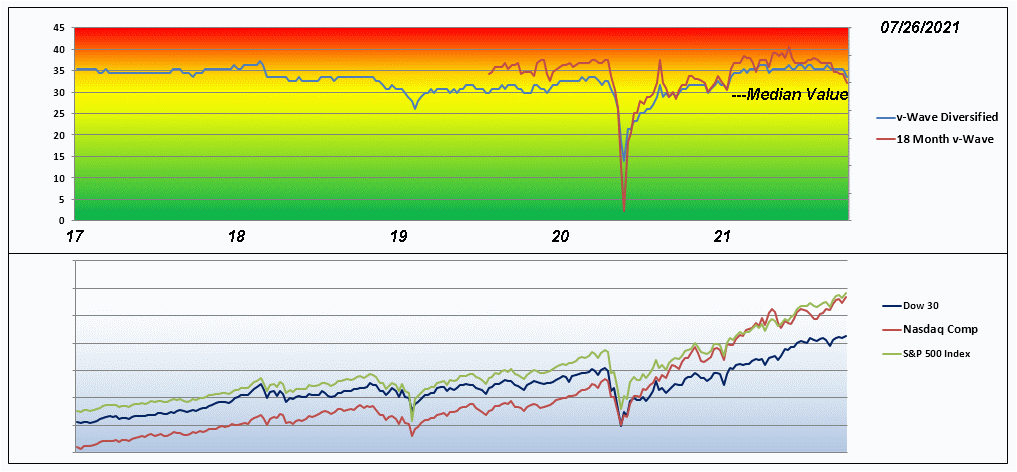 The v-Wave dropped out of its bearish zone for the first time in many months. While still not back to its median value, it's improving in risk profile.