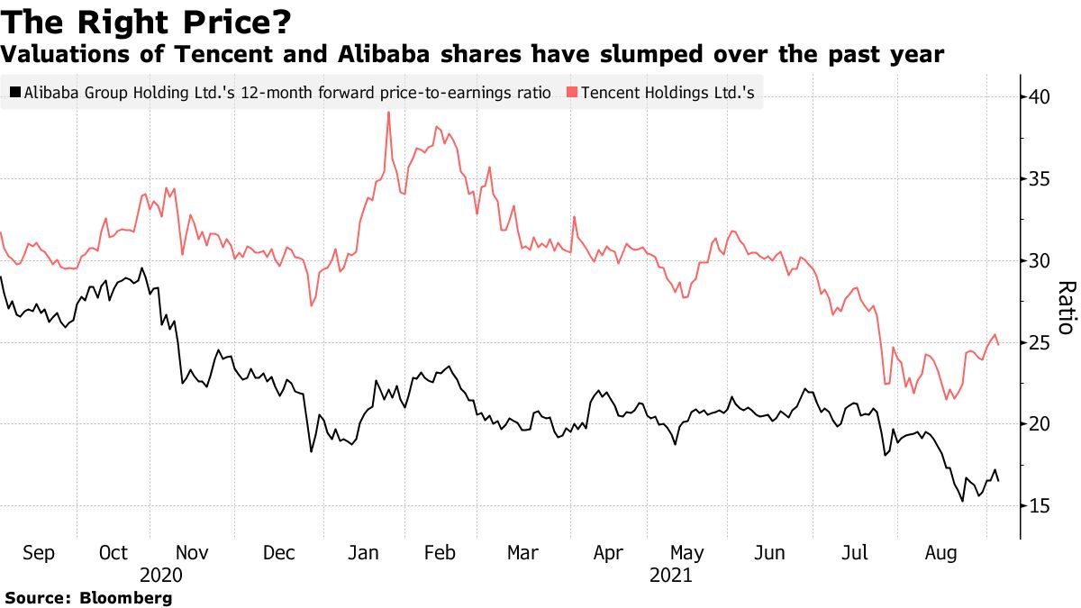Alibaba, Tencent Look Cheap Even With China Crackdown Risks, NYU Professor Says Ishika Mookerjee 3 September 2021, 15:17 GMT+8 Some of China’s bellwether Internet stocks are undervalued even as risks of further downside from Beijing’s regulatory clampdown persist, according to a finance professor at New York University.