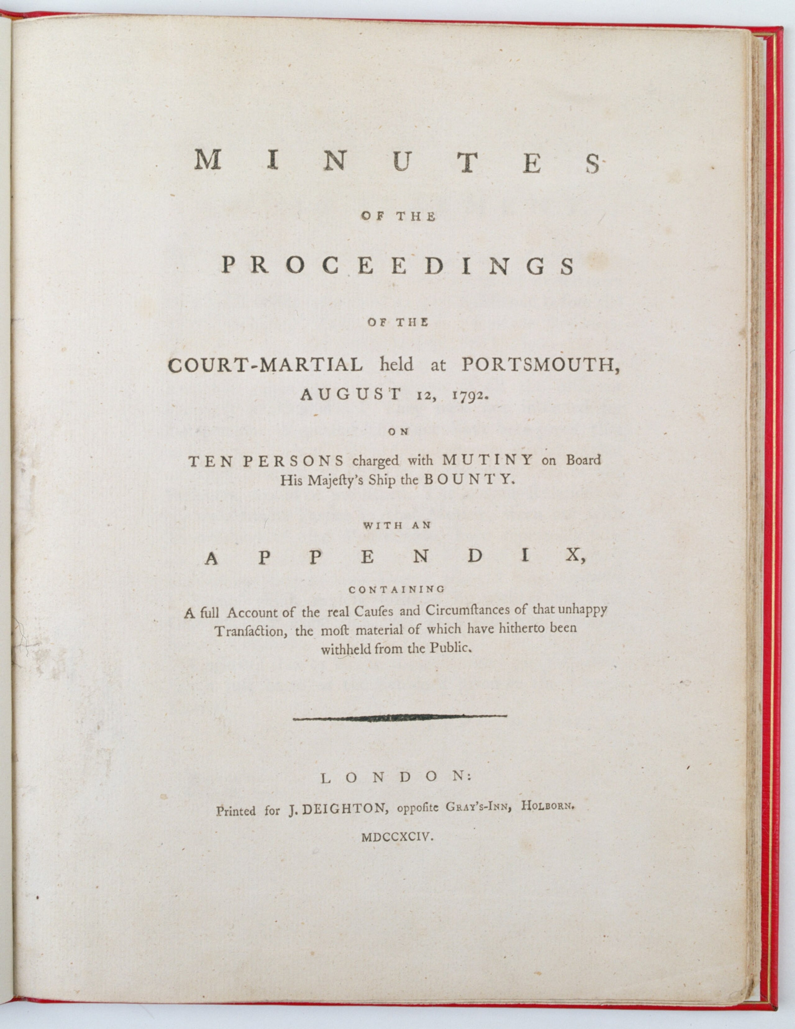 In September 1792, the 10 men who had been brought back to England faced court-martial. Under English law, any man who remained on the ship was guilty of mutiny regardless of whether he had actively participated. Four were acquitted, and six sentenced to death by hanging. Three of those six were ultimately pardoned, but the other three mutineers—Thomas Burkett, John Millward, and Thomas Ellison—were hanged on October 29, 1794.