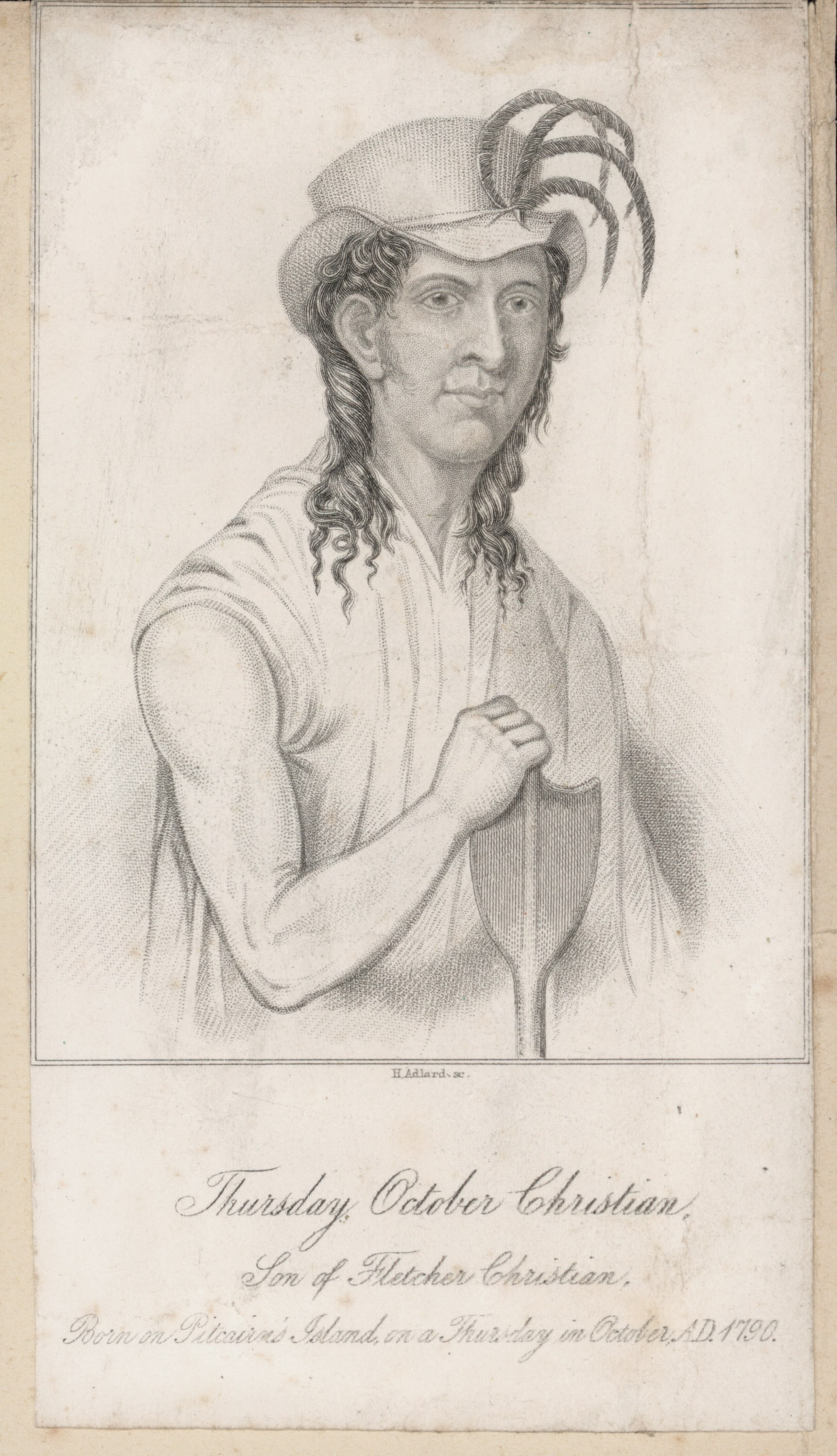 Left: Portrait of Thursday October Christian, son of mutineer Fletcher Christian. The mutineers settled on Pitcairn Island, where they fathered a number of children with native women. Their descendants still live on the island today.