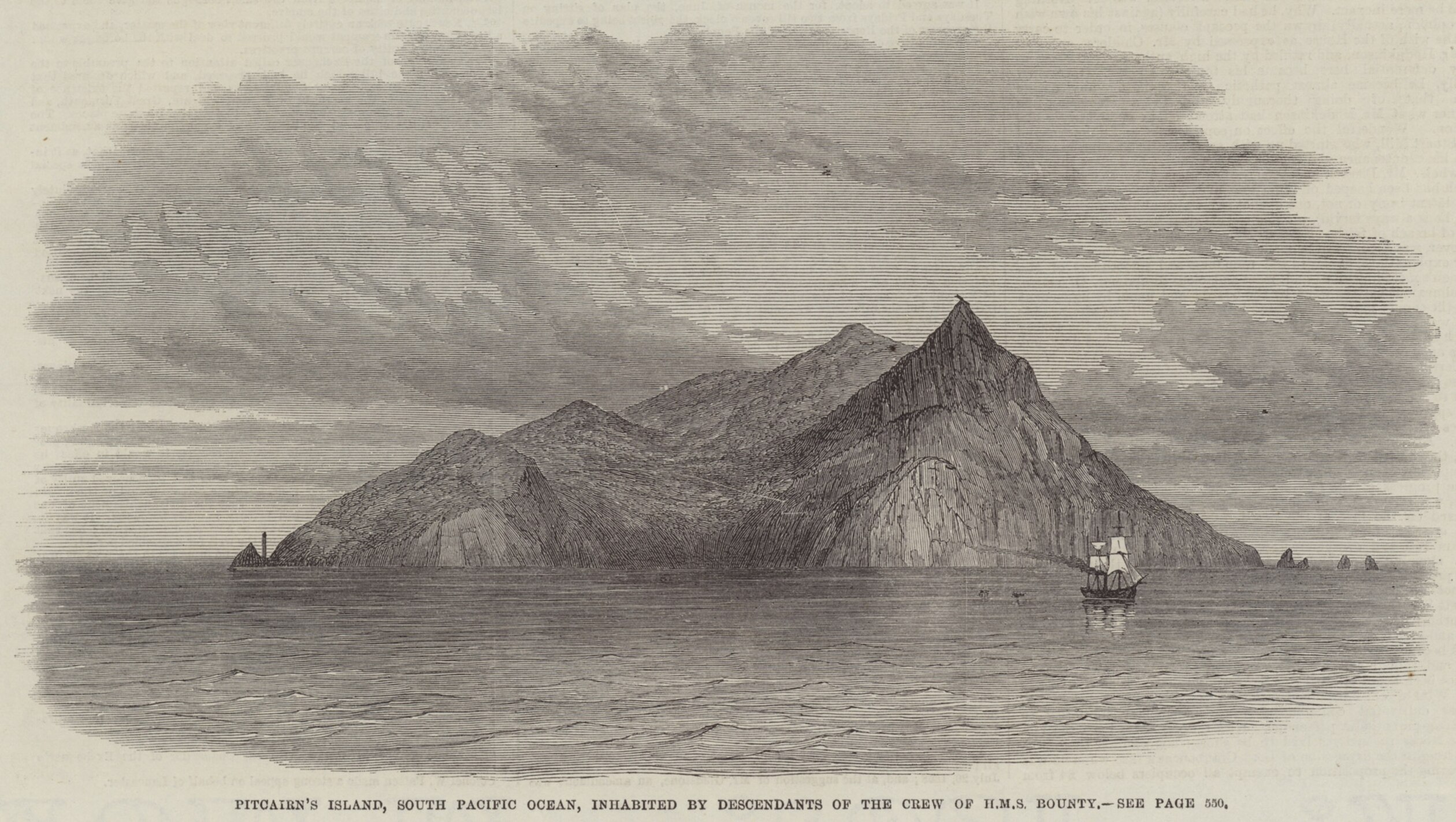 A 19th-century engraving of the Pitcairn Islands, where the descendants of the H.M.S. Bounty mutineers still live today.