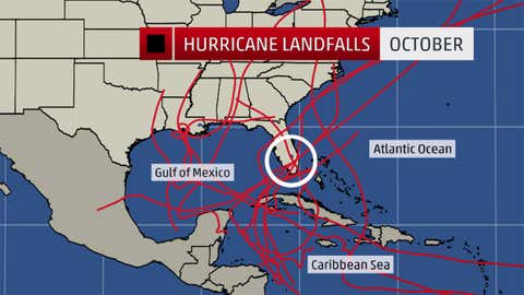 From 1851-2014, 32 hurricanes have made landfall in Florida in October, dwarfing the state with the next highest number of October landfalls -- Louisiana with nine.