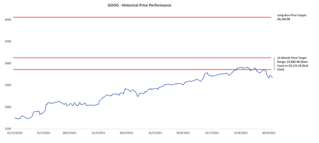 Given Google’s growth trajectory has not materially changed from our previous analysis, our 12-month price target remains in the range of $2,882.98 to $3,123.18 (please visit here for further detail on our valuation analysis).