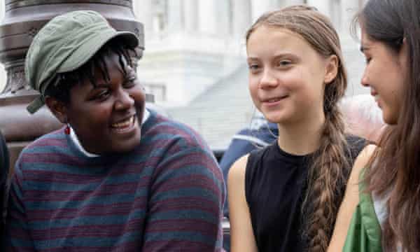 Greta Thunberg with Vic Barrett left, during a press conference outside the US capitol. Photograph: ZUMA Press, Inc./Alamy“In such an emergency as we are in right now, everyone needs to take their moral responsibility, at least I think so, and use whatever power they have, whatever platform they have, to try to influence and push in the right direction, to make a change,” she said. “I think that’s our duty as human beings.”