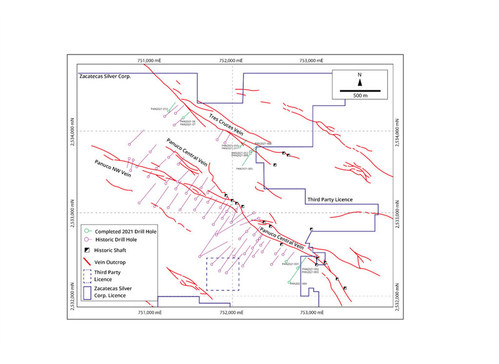 VANCOUVER, BC, Nov. 23, 2021 /CNW/ - Zacatecas Silver Corp. ("Zacatecas Silver" or the "Company", (TSXV: ZAC) (OTCQB: ZCTSF) (Frankfurt: 7TV) is pleased to report multiple silver and gold assays in its initial diamond drilling program at Panuco Central Vein and the Tres Cruces (Panuco North) Vein. In addition to the high-grade intercepts reported today, assays from multiple additional drill holes are pending.