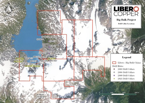 VANCOUVER, BC, Jan. 4, 2022 /CNW/ - Libero Copper & Gold Corporation (TSXV: LBC) (OTCQB: LBCMF) (DE: 29H) is pleased to report assay results for the five hole, 1,743 metre drill program at the Big Bulk porphyry copper project in British Columbia's Golden Triangle. Results suggest the presence of a large mineralizing system, with new drill results confirming a greater than two kilometre strike length.