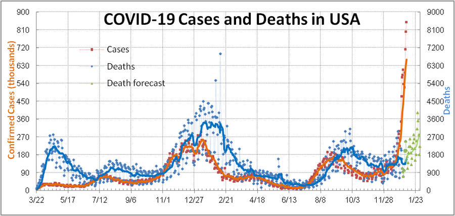 #COVID19 continues to soar in the US and could legitimately hit 1M/day before it peaks later this month. Given the pattern of deaths, we are forecasting #Omicron will kill more than the last #Delta wave and could approach the all-time high set earlier this year. Don't #LetItRip.