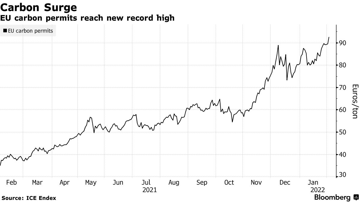 Europe’s Carbon Price Surges Above 90 Euros to Record High