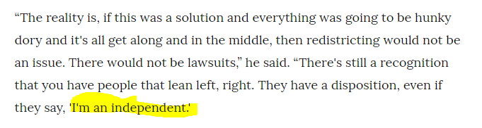 Yeah, right. That's the ticket. Independent, like Bernie Sanders is independent.