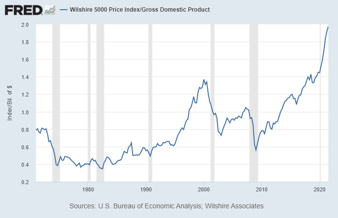 For example, public US equities now represent about 200% of US GDP, which is an all-time high: