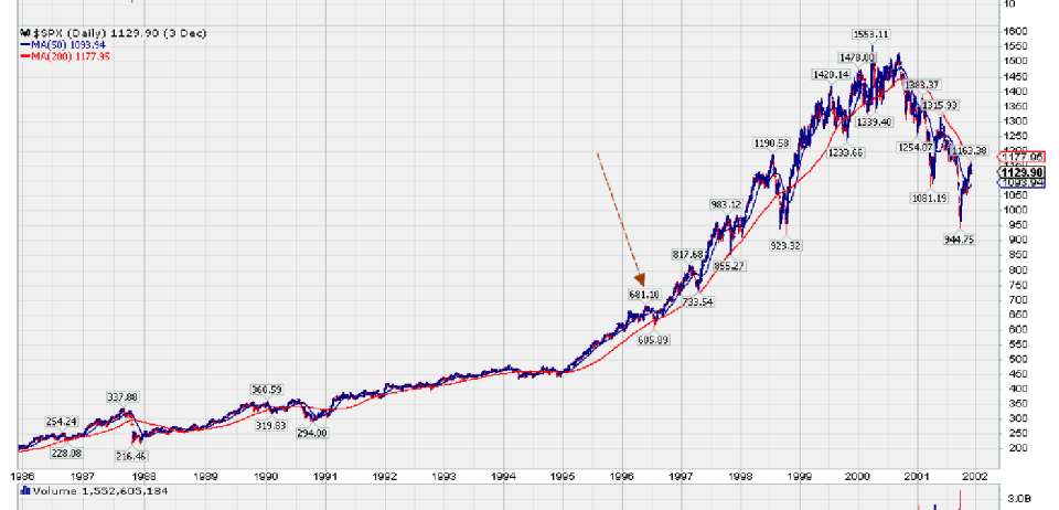 1995 to 2000 5th Wave. Big Tops Are A Long Process. On a comparative basis we are at the arrow. In this wave the 3rd extended, it is unknown if the 3rd for our situation will extend, we see. It should be longer in time than the 1st wave in any event, and the astro vibes indicate it will extend. Again we see and take it as it comes. If it does extend I think we will get one hell of a '4' correction, like happened in the below scenario. Drive em all to the bear camps once again. Then POW, straight up.
