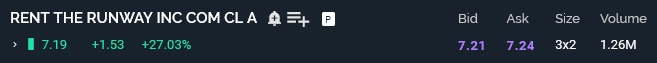 ....Jefferies initiated coverage on Rent the Runway Inc (NASDAQ: RENT) with a Buy rating. The price target for Rent the Runway is set to $13.00. Rent the Runway earned $3.35 in the third quarter, compared to $3.98 in the year-ago quarter. At the moment, the stock has a 52-week-high of $24.77 and a 52-week-low of $4.37. Rent the Runway closed at $5.66 at the end of the last trading period....