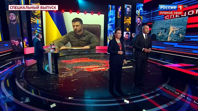 Russian state TV obsessively asserts that Zelensky is not in Kyiv, but elsewhere abroad. Why does it matter? Because they think that Ukrainians are fighting for Zelensky and not for their country. As members of the cult that worships Putin, that's what makes sense to them.
