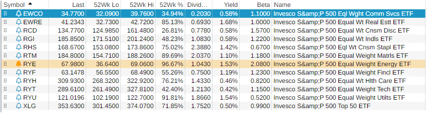 Note the Column "52 Week %" and the current values of the Tech, Communications, Consumer Discretion and even Industrials sectors. All are off their 52 week highs.