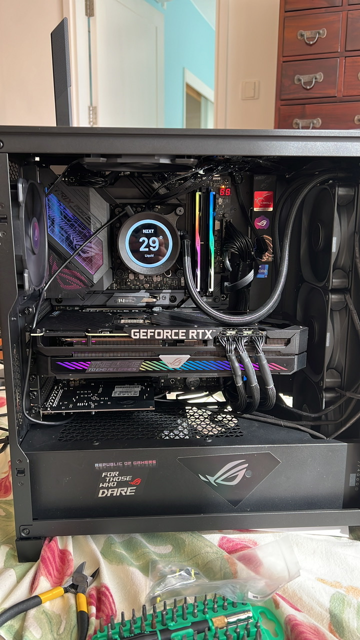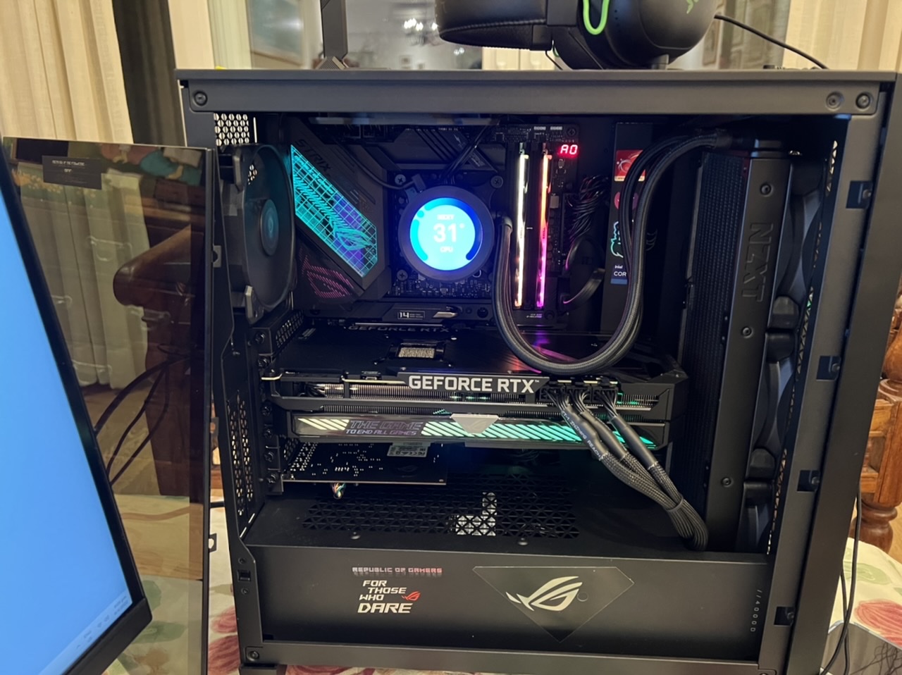 The (five) fans of the case, including the three hooked up the liquid cooling block, were installed in a way that all were sucking air into the case, as opposed to the three on front panel sucking in air, and one on top and one on back of the case blowing out hot air. Not existential but not a good idea.
