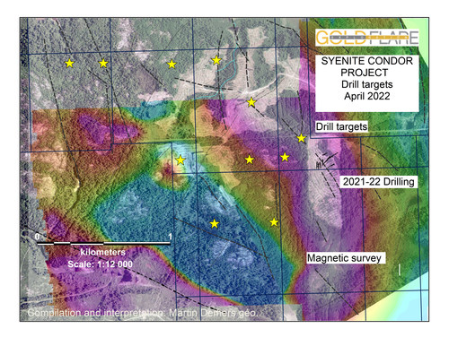 GOLDFLARE: IDENTIFIED NEW DRILL TARGETS ON THE SYENITE CONDOR PROJECT, 5,000-METRE DRILL PROGRAM PLANNED AND FLOW-THROUGH FINANCING CLOSING