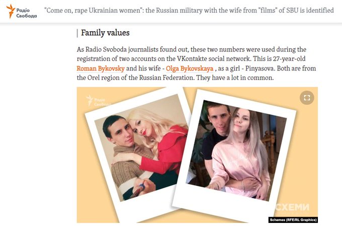 RFERL journalists identified the participants in an intercepted conversation where the wife told her husband—a Russian serviceman fighting in Ukraine—to rape the Ukrainian women, just be sure to use protection and don't talk about it. radiosvoboda.org