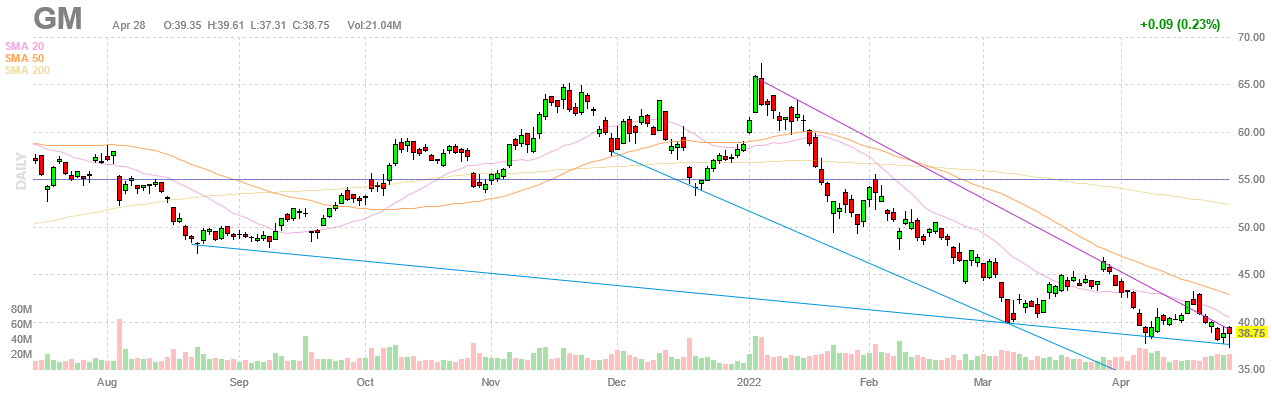 General Motors - Thursday April 28, 2022 close - daily chart -
