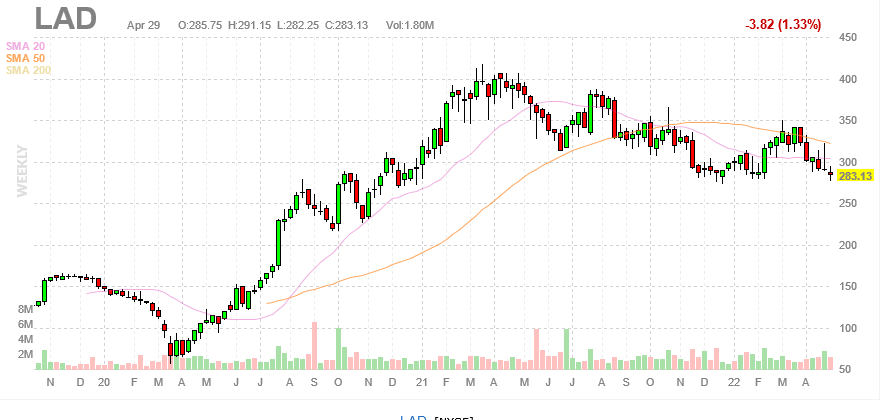 chart #2 below is the weekly chart for LAD - Lithia Motors, a reasonably large chain of dealerships &
