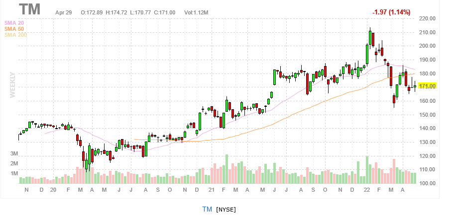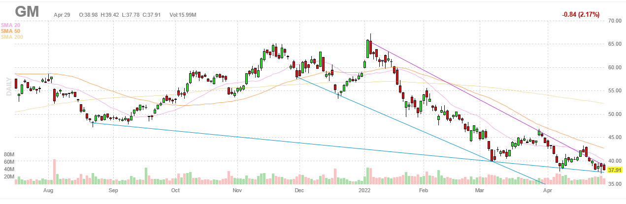 * GM, F, TM, HMC daily price charts continue to reflect investors possibly seeing