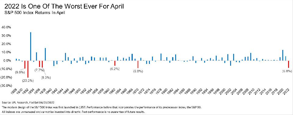 S&P 500 index fell 8.8% in April, representing the worst April since 1970