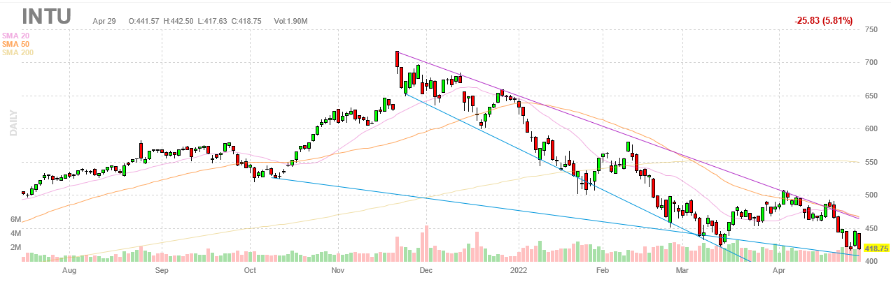 Intuit - INTU - daily chart updated for Friday April 29, 2022 close -