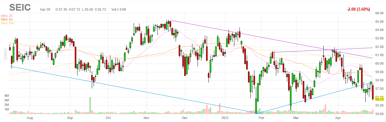 SEI Investments - SEIC - daily chart updated Friday April 29, 2022