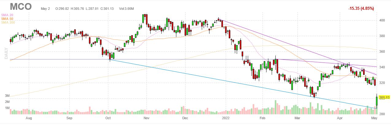 Moody's Corp. - MCO - daily chart updated Monday May 2, 2022