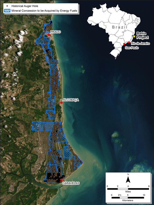 Mark S. Chalmers, President and CEO of Energy Fuels stated: "This is another very significant step in Energy Fuels' development as a major global rare earth element producer based in the United States. We are aggressively seeking to expand our monazite sand feeds. With guidance from our heavy mineral sand experts, the Company has been evaluating the acquisition of monazite-bearing projects. The Bahia deposit is well-known throughout the HMS industry as having excellent potential to produce high-quality ilmenite, rutile, and zircon products, in addition to monazite. We are very pleased to have secured this project, as it has the potential to provide Energy Fuels with our own low-cost source of monazite feed that we fully control. The Company expects to supplement its monazite supply in the future with open market purchases, arrangements with existing monazite producers, and/or additional acquisitions. Energy Fuels is in advanced discussions with other current and future monazite producers around the world to provide creative options on how to best build upon our momentum and add further scale.