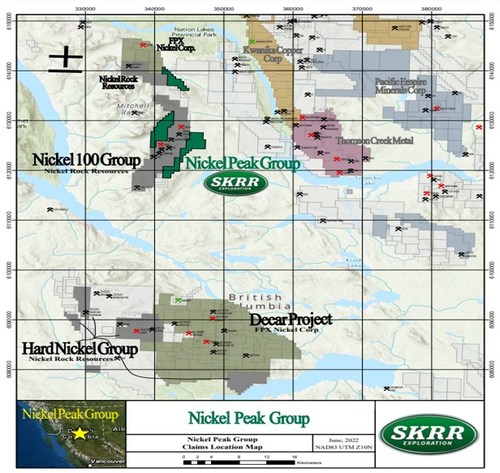 VANCOUVER, BC, June 22, 2022 /CNW/ - SKRR Exploration Inc. ("SKRR" or the "Company") (TSXV: SKRR) (OTC: SKKRF) (FSE: B04Q) is pleased to announce it has expanded its 100% owned Nickel Peak Claim Group to cover additional areas of interest over the Creek Complex - Trembleur Ultramafite Unit Late Pennsylvanian to Late Triassic Ultramafic Rocks, contiguous to FPX Nickel Corp.