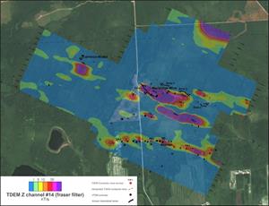 TMC Geophysics have advised the company to infill the original grid with STDEM reconnaissance profiles at 100 m apart. This would represent a major add-on for the survey data analysis, as one can already observe its relevance by the examination of the historical airborne EM data. Planned drill holes will be surveyed with down-hole geophysical systems. These surveys have proved successful in identifying off-hole mineralization in major nickel camps throughout the world. Downhole EM systems have very likely not been used in the Marbridge area.