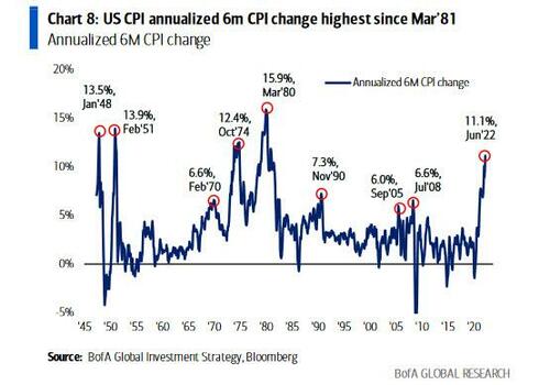 But asset prices determined by two things: 1. interest rates and 2. corporate earnings, and in H2 rates set to rise (US CPI past 6 months annualizing 11.1%, highest since Mar’81), earnings set to fall...