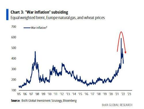 Bitcoin 20k,EUR 1.00 to hold,BKX 100 to hold,US IG CDX not to break 100,GT30 below 3.0%,US$ reversalWar inflation subsiding: Wheat prices -44%, brent oil - 24%, Europe natural gas -21% from recent peaks as investors discount “less war” in H2, and because according to Hartnett, it makes little sense for Russia to close Nord Stream 1 gas pipeline indefinitely (we disagree).