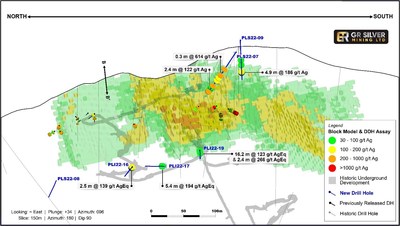 VANCOUVER, BC, Sept. 12, 2022 /CNW/ - GR Silver Mining Ltd. ("GR Silver Mining" or the "Company") ( TSXV: GRSL) (OTCQB: GRSLF) (FRANKFURT: GPE) – is pleased to announce infill drilling results that make up part of the resource update program in progress at the Plomosas Mine Area, Plomosas Project in Sinaloa, Mexico. These drill holes were targeted by the Company to replace historical holes used in the 2021 NI 43-101 mineral resource estimate, where zero values were assigned, or to test new near-surface and underground high-grade Ag-Au mineralized zones, identified in the recent underground sampling/mapping program. The infill drilling program is continuing in the Plomosas Mine Area through the latter part of 2022, in anticipation of an updated resource estimate in Q1|2023.