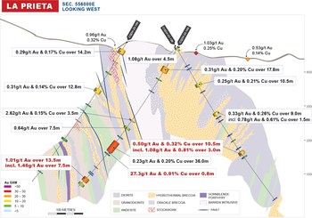 Additional drilling will be considered for early 2023 to continue to test and evaluate the economic potential of Au-Cu mineralization at La Prieta.