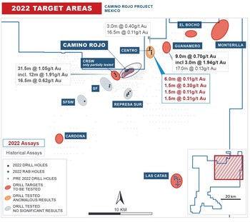 Figure 4: Camino Rojo – 2022 Target Areas (CNW Group/Orla Mining Ltd.)