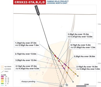 Figure 3: Camino Rojo Sulphides Cross Section (CRSX22-07) (CNW Group/Orla Mining Ltd.)