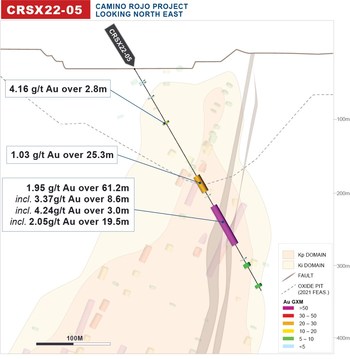 Figure 2: Camino Rojo Sulphides Cross Section (CRSX22-05) (CNW Group/Orla Mining Ltd.)