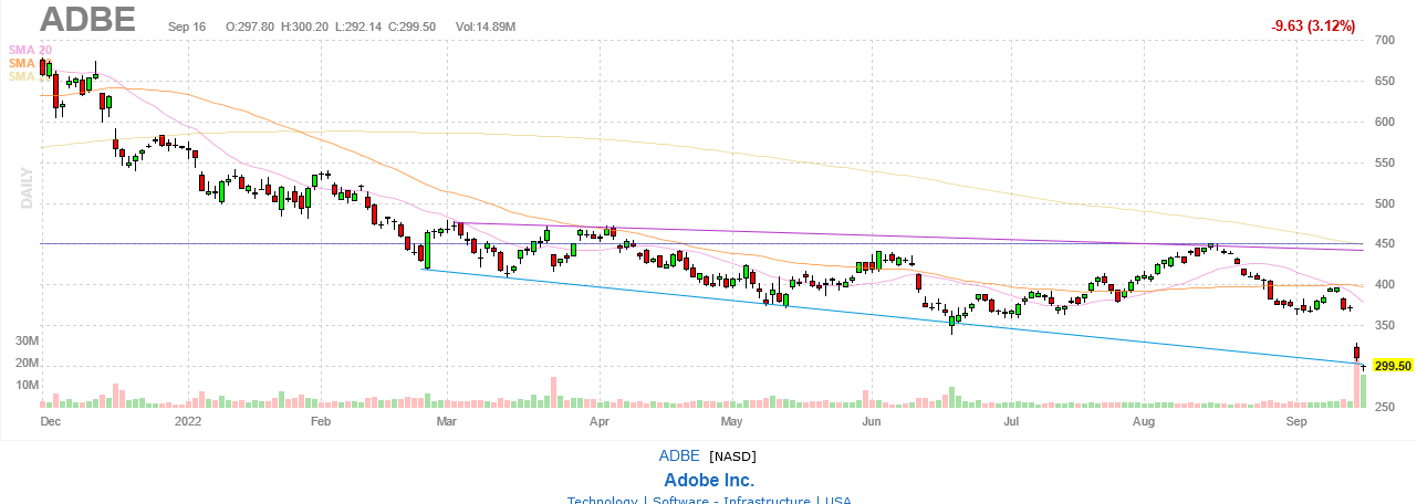 ADBE - Adobe - Friday September 16, 2022 close - daily chart screenshot -