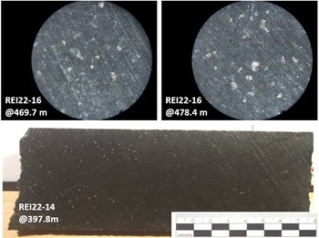 Figure 4 – Reid – Stronger Mineralization Examples – REI22-14, REI22-16 (CNW Group/Canada Nickel Company Inc.)