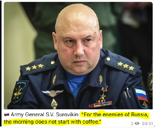 AND ............... Russia, under the Command of General Surovikin, their new Overall Commander of Russia's forces in Ukraine, no doubt ordered the unleashing of several hundred precision rocket strikes over the last 48 hours.